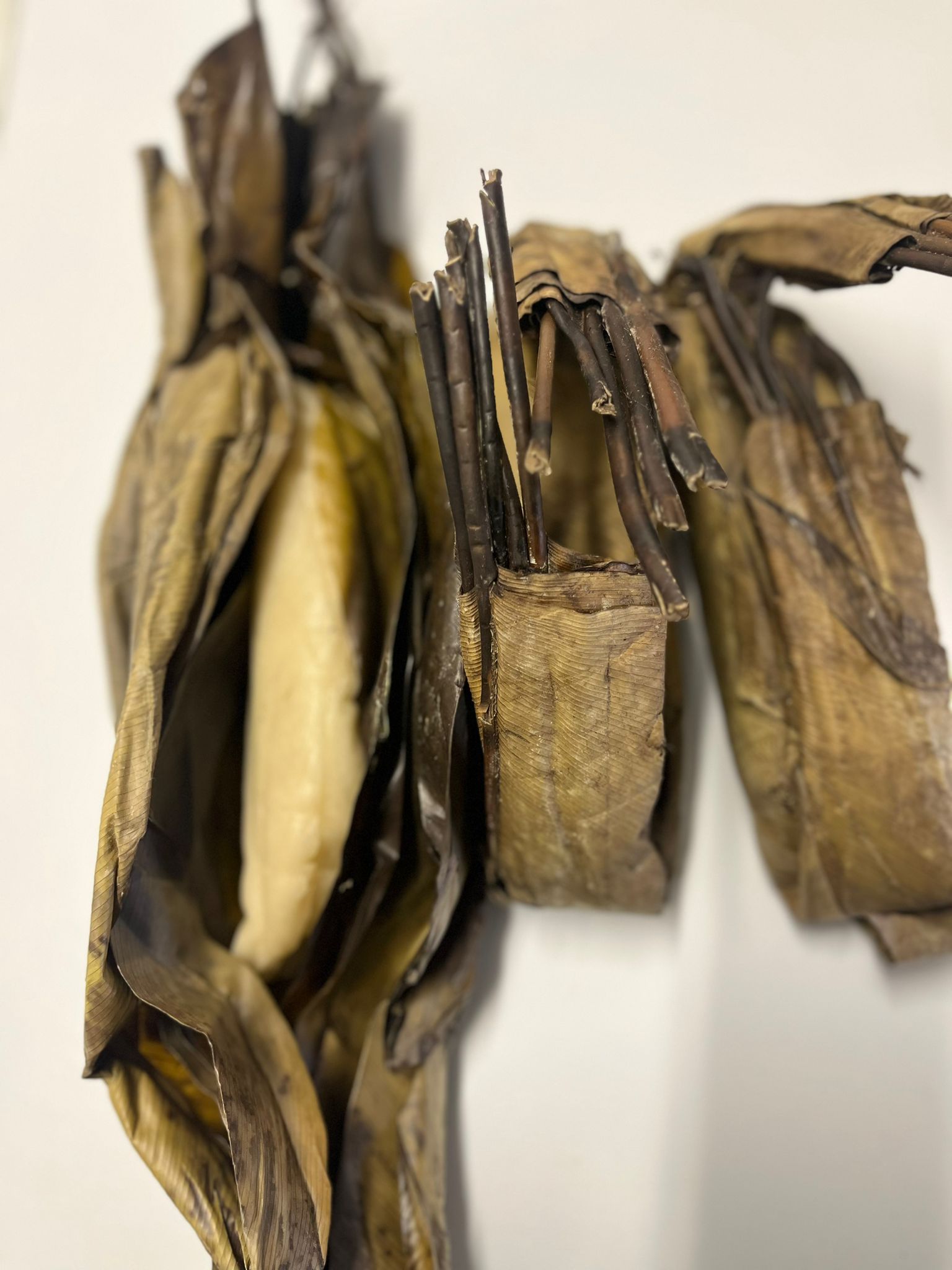 Une fois fermentée, la pâte de manioc est pressée pour enlever l’excès d’eau, puis moulée en forme de boudin ou de pain. Elle est ensuite enveloppée dans des feuilles de bananier ou de marantacée, ce qui lui confère une légère saveur végétale et aide à conserver ses arômes. La Chikwangue est ensuite cuite à la vapeur ou bouillie jusqu’à ce qu’elle soit ferme.